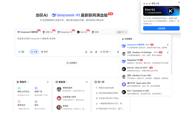 当贝AI聚合了满血版DeepSeek-R1、豆包大模子1.6、通义千问等十余种国内顶尖大模子,小我学问库和共享学问库都支撑上传PDF、Word、图片等文件,职场中。架构开源取生态共建:K2采用DeepSeek V3架构,多模子切换的“最优解”:用户可按照使命类型一键挪用最优模子。